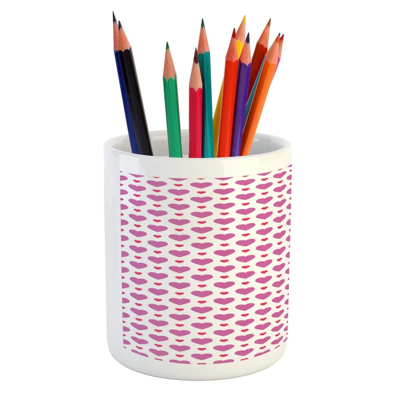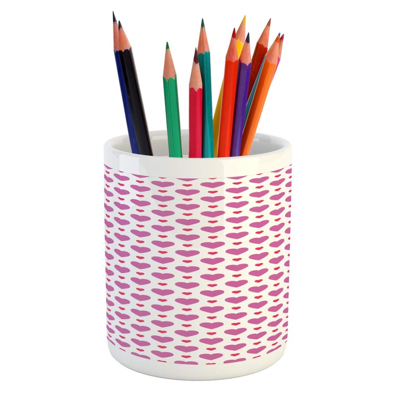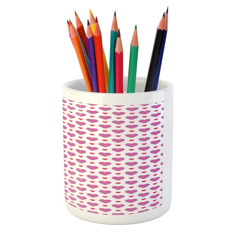 Ambesonne Valentine's Day Pencil Pen Holder, Simple Love Themed Pattern with Big and Little Hearts, Printed Ceramic Pencil Pen Holder for Desk Office Accessory, Fuchsia and Dark Pink
