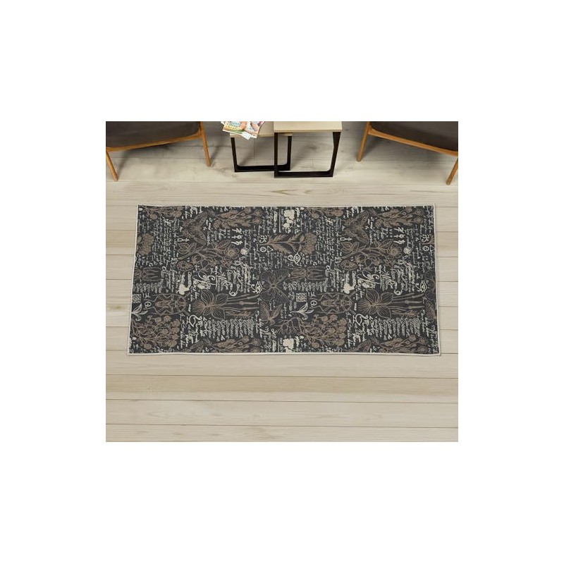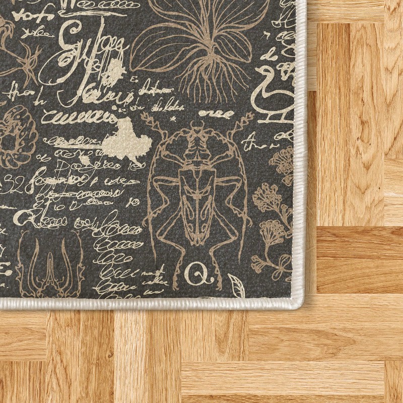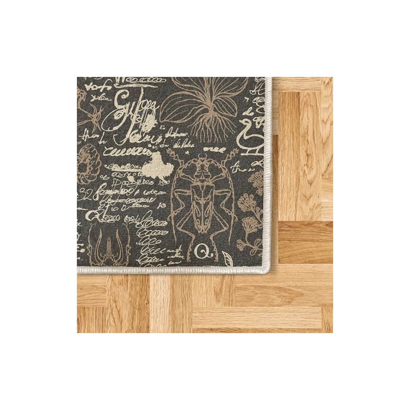 Ambesonne Wild Life Decorative Rug, Exotic Jungle Animals Beetle and Moth Sketch with Floral Writing, Quality Carpet for Bedroom Dorm and Living Room, 2' 2" x 3' 7", Dark Khaki Charcoal Grey