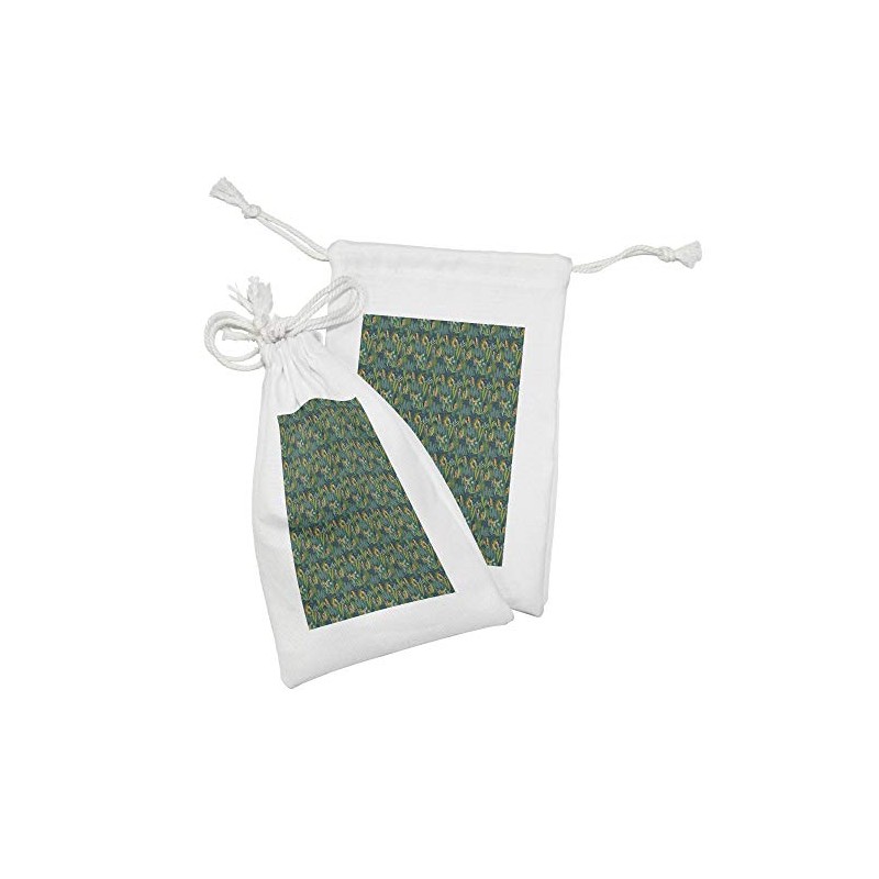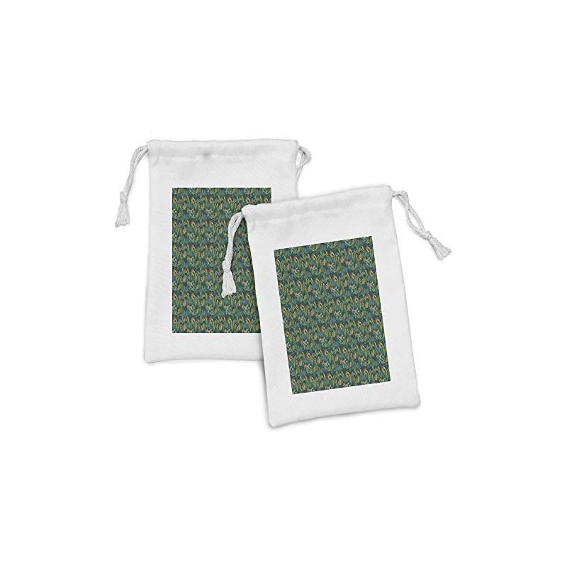 Ambesonne Wildlife Fabric Pouch Set of 2, Girl in Jungle Along a Leopard Illustration Wild Forest Themed Design, Small Drawstring Bag for Toiletries Masks and Favors, 9" x 6", Hunter Green Dark Teal