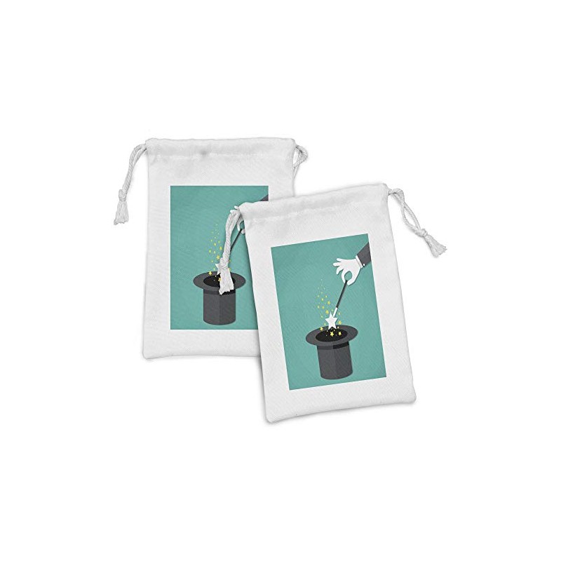 Ambesonne Wizard Fabric Pouch Set of 2, Hands in White Gloves Holding a Magic Wand with Stars Above Black Hat, Small Drawstring Bag for Toiletries Masks and Favors, 9" x 6", Turquoise Yellow