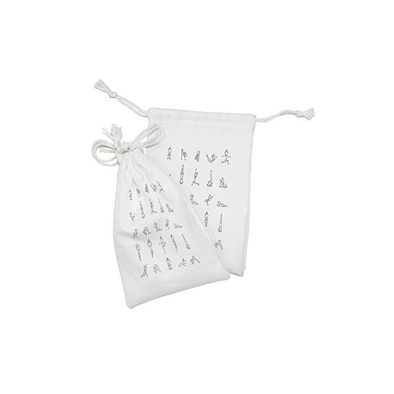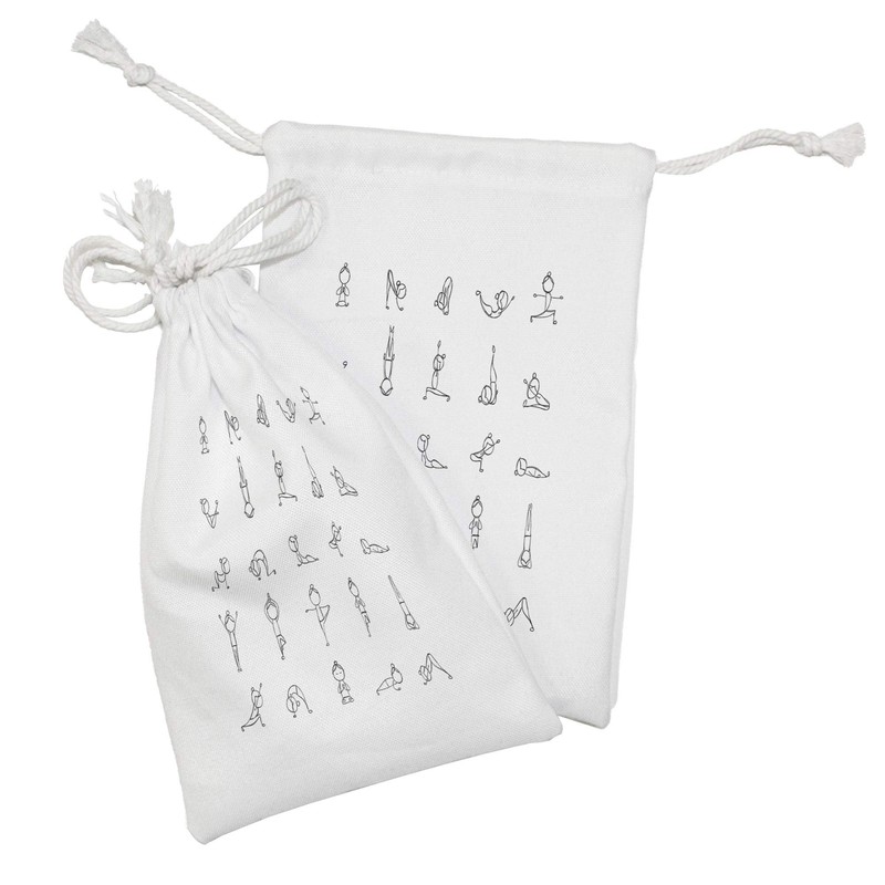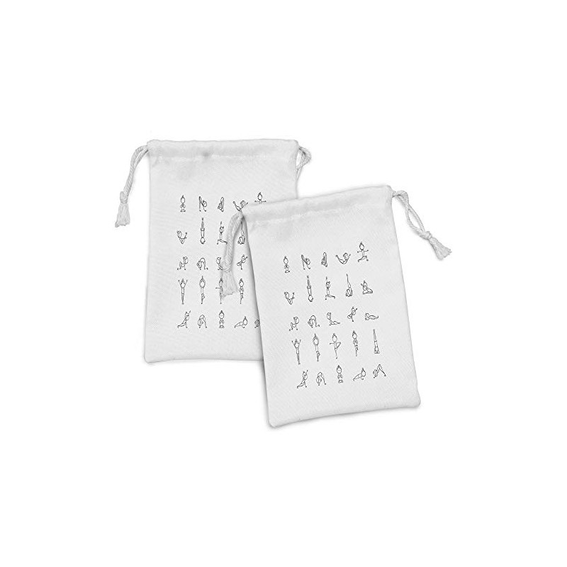Ambesonne Yoga Fabric Pouch Set of 2, Stickman Practicing Different Yoga Moves Stretching Physical Recreation Strength Fit, Small Drawstring Bag for Toiletries Masks and Favors, 9" x 6", Black White