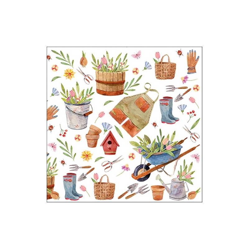 Ambiente Happy Gardening Napkin 33 x 33 cm Summer Pack of 20 Paper Decoupage Motif Printed on One Side