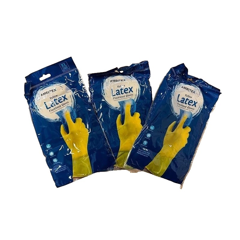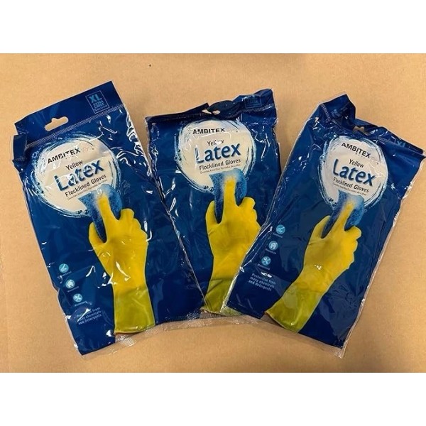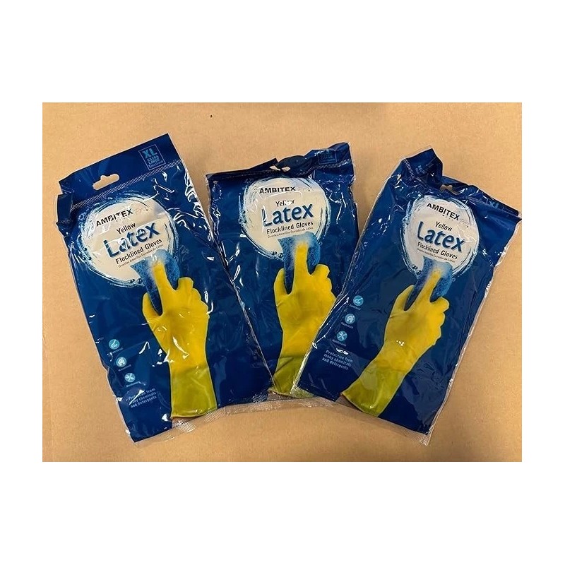 ambitex Yellow Latex Flocklined GLOVES 3 PAIRS-XL