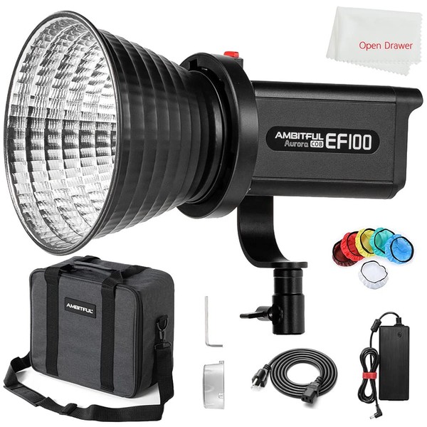 AMBITFUL EF100 LED Video Light, 100W LED Light, 5600K, CRI 95+, 35500Lux@1m, APP Cotrol, Bowens Mount with Standard Refelctor for YouTube Studio, Studio LED Video Photography Light