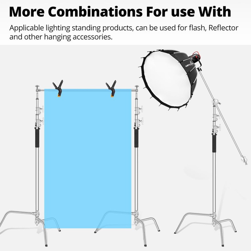 - 🌈Heavy Duty & Versatile: Constructed of 100% solid stainless steel, the C-stand provides long-lasting durability to support heavy-duty photography equipment such as umbrella, flash, monolight, reflector, softbox and more