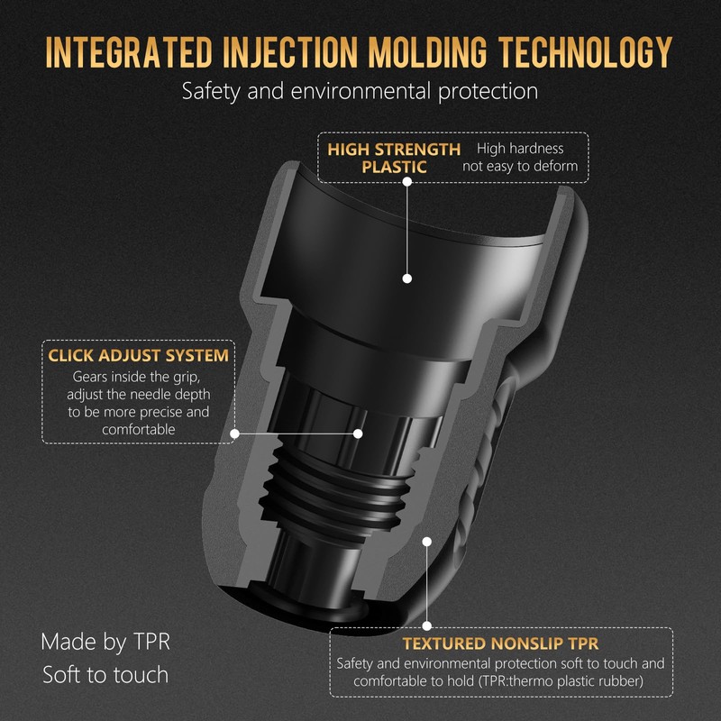 - Click Adjust System: There is a gear design inside the grip, which is perfectly compatible with the ambition tattoo machines. The needle depth can be adjusted more accurately and comfortably by turning the disposable grip, and it is not easy to change the position.