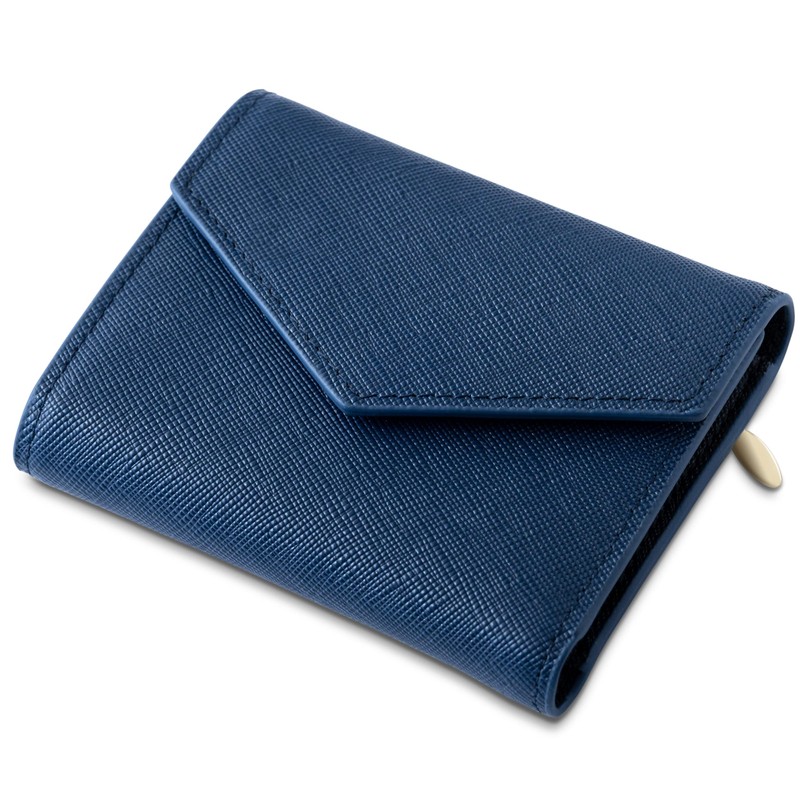 Ambitions Mini Wallet, Tri-Fold (Genuine Leather Luster and Glossy, Won't Break Bills, Won't Bulge), Genuine Leather, Women's, Lightweight, Compact, navy