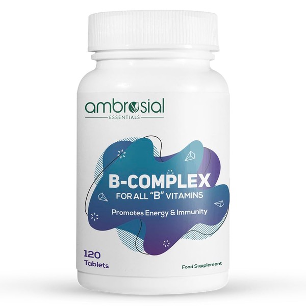 Ambrosial B-Complex Tablets with Vitamin B1, B2, B3, B5, B6, B9, B12 & Biotin | Complete B-Vitamin Supplement | 120 Vegetarian Tablets