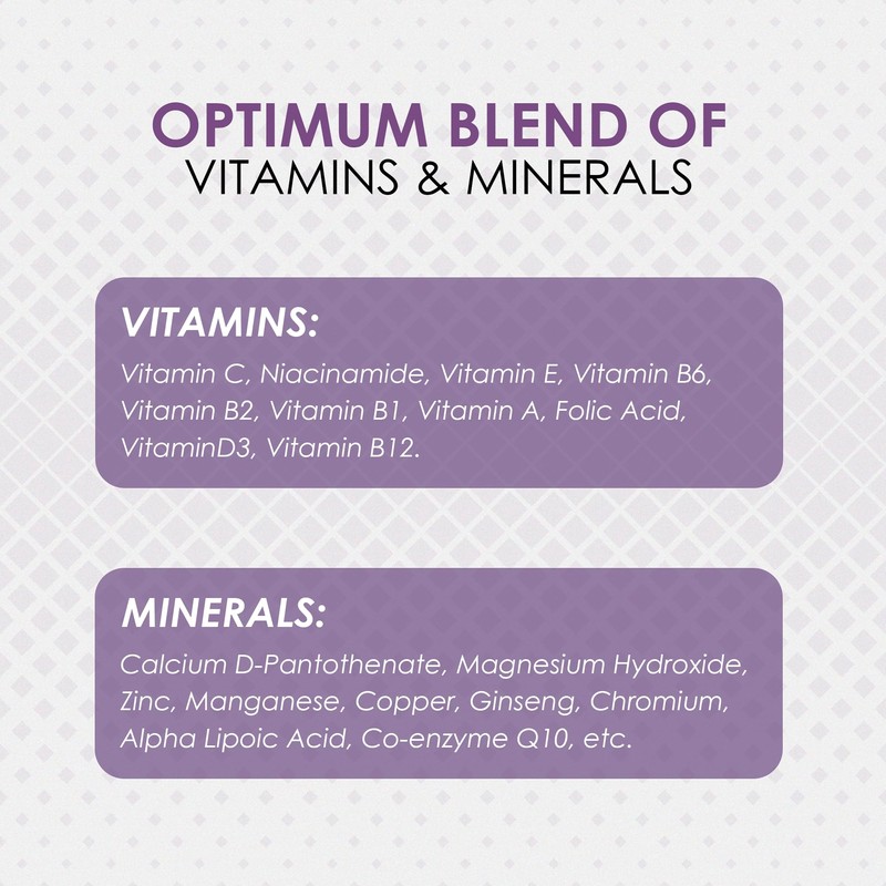 - Vitality and general well-being: AMBROSIAL Women's Multivitamin provides essential nutrients daily that contribute to vitality and overall well-being, promoting energy levels, immune function and overall health maintenance of women.