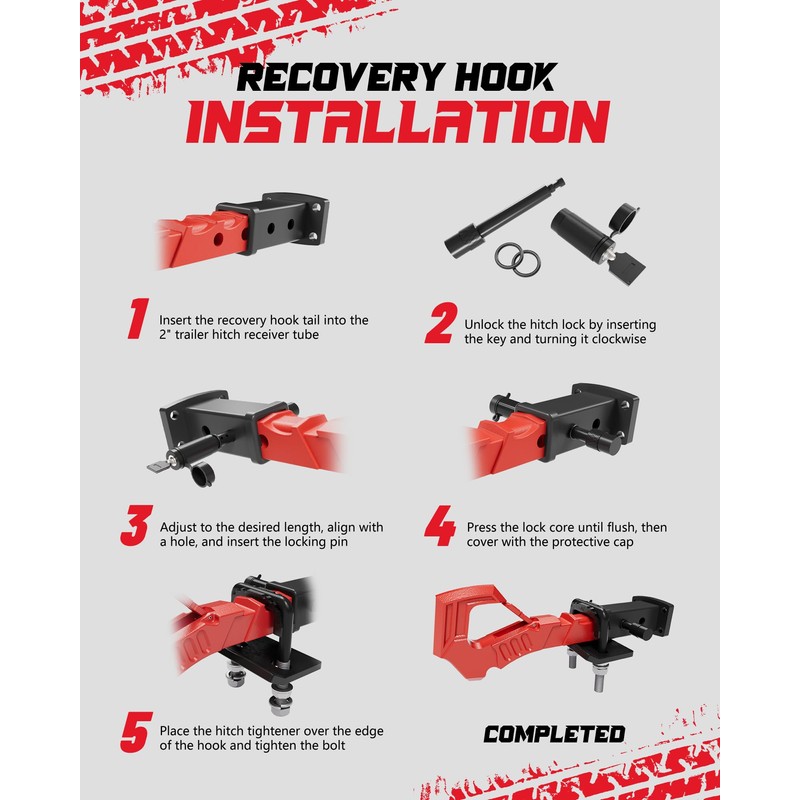- APPLICATION: This tow hook is not only suitable for truck hitch but also for hardline off-road vehicles, trailers, SUVs, ATVs, UTVs, and other vehicles with a 2-inch receiver tube. We have provided an extended trailer lock to fit more vehicles. Please confirm that the lock length is suitable for yours
