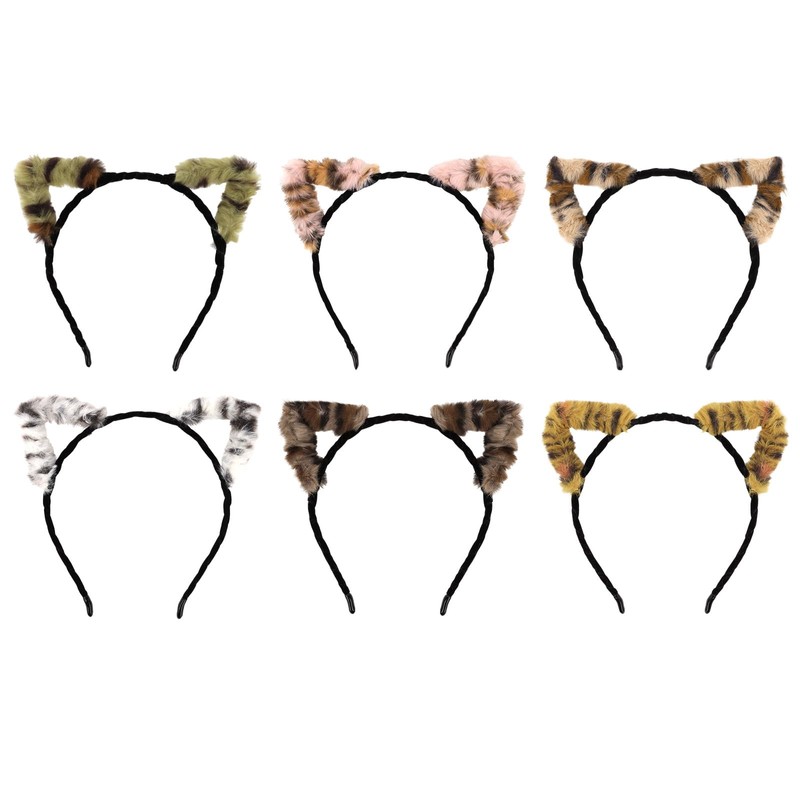 AMCAMI Cheetah Ears Headband, 6 Pack Fuzzy leopard print ears headband,Cat Ear Headpiece for Halloween Costume Animal Cosplay Party