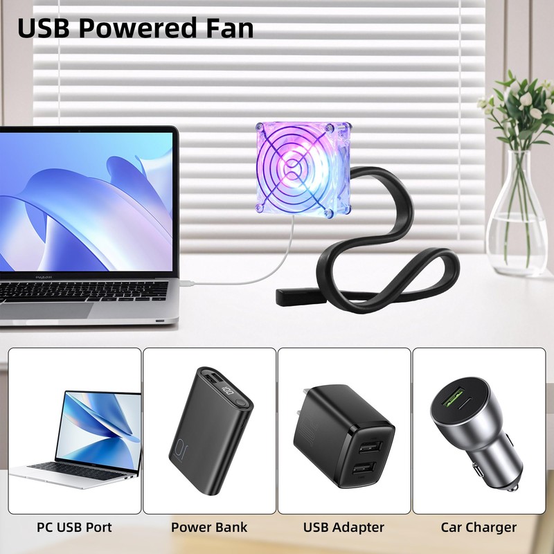 AMCHIXIN 3.15in 5V USB Flexible Arm Stand Gooseneck LED Small Fan Transparent Portable Holder Cooling Fan for Office Bedroom Car
