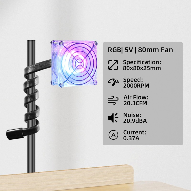 • 【Packaging Contents】1x fan(80x80x25mm), 1×bracket, 2×metal covers, 4×screws.