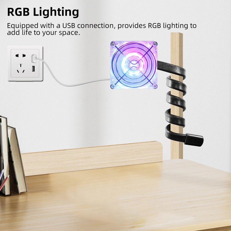 The Flexible Arm Stand LED Small Fan offers ultimate flexibility. Its 50.5 cm flexible bracket can be wrapped around handles, hung on poles, or placed on desks. Built-in LED lights enhance your environment, while the USB connection ensures easy power from computers or adapters. Perfect for offices, bedrooms, or cars, this fan provides efficient cooling with hands-free convenience.