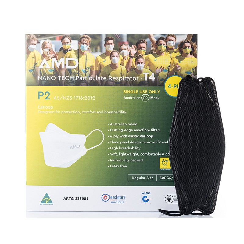 AMD Face Mask - Black Mask AMD NANO-TECH P2 (N95) Particulate Respirator T4 Earloop with Four Layers 50 Pack - Black
