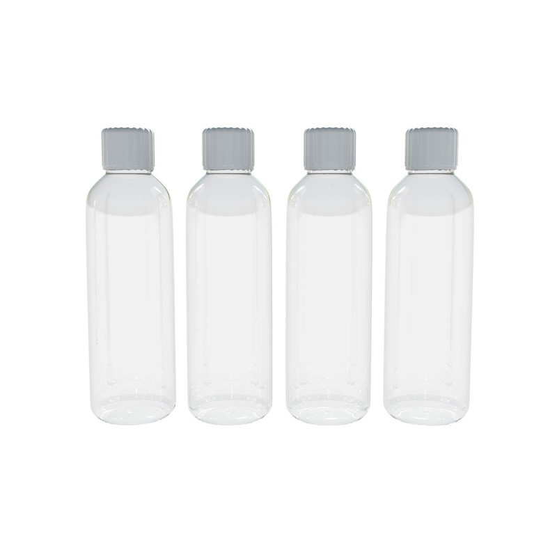 - This AME Bespoke Multi Pack includes 4 Clear Refillable Plastic Travel Bottles with 4 Screw Lids, each of 100ml capacity - perfect for storing toiletries and essential liquids while travelling.