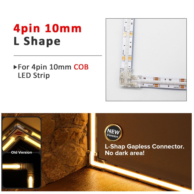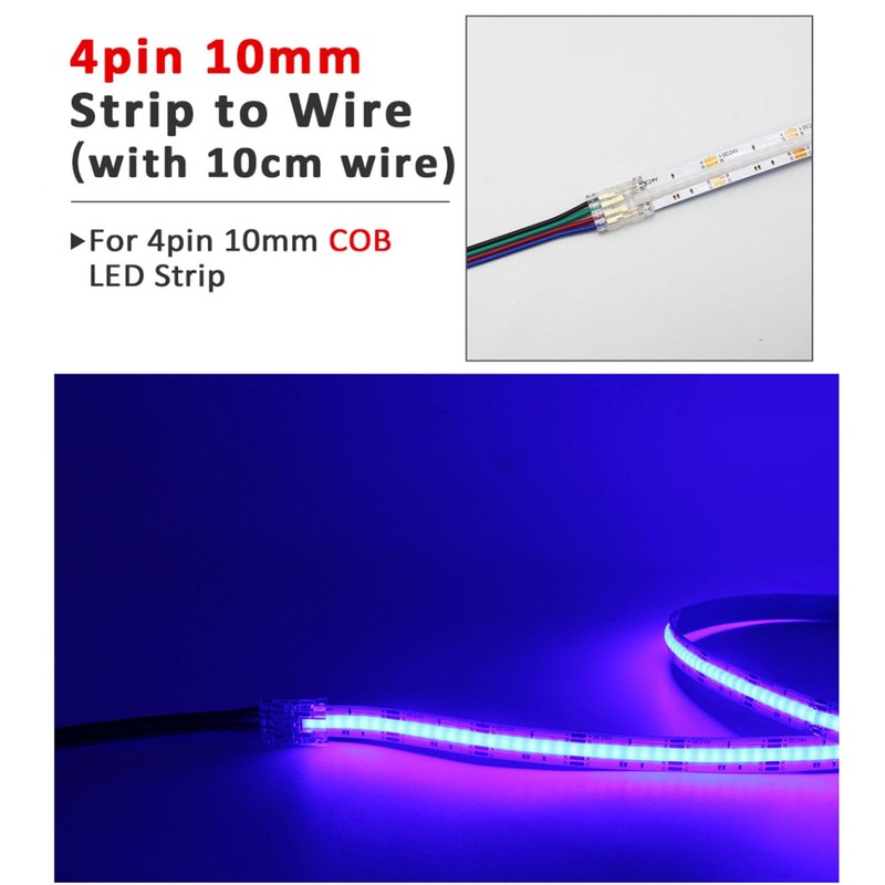 - 4 Pin COB LED Connectors---These updated 4 Pin COB LED Mini Connectors are suitable for flexible 10mm DC12V/24V COB LED Strips.