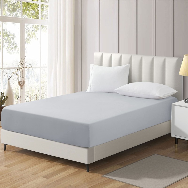 AMEHA King Size Fitted Sheets 25 cm Deep Soft Brushed Microfiber Fabric Easy Care Fade Resistant Fitted Bed Sheets (Silver, 152 x 200 cm)