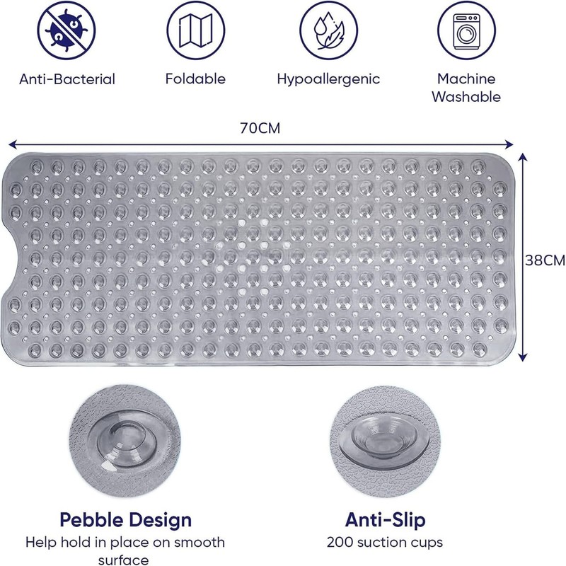 - Slip Resistant & Anti-Mould: Designed with a unique suction cup pattern, this mat provides a secure, non-slip surface, ensuring maximum safety even when wet. It’s also engineered to resist mould, providing a safe and hygienic shower experience.