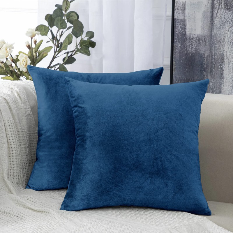 AMEHA Velvet Navy Cushions Cover 45 x 45 cm Pack of 2 Square Throw Pillow Cases Decorative Sofa Cushion Covers for Bedroom Couch Car with Invisible Zipper (18 x 18 Inch)
