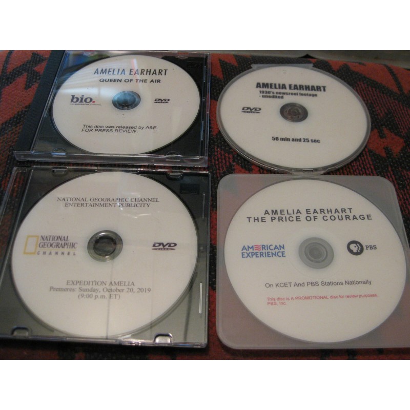 The third DVD is "EXPEDITION AMELIA EARHART" from 2019 NATGEO, 90 minutes (National Geographic)