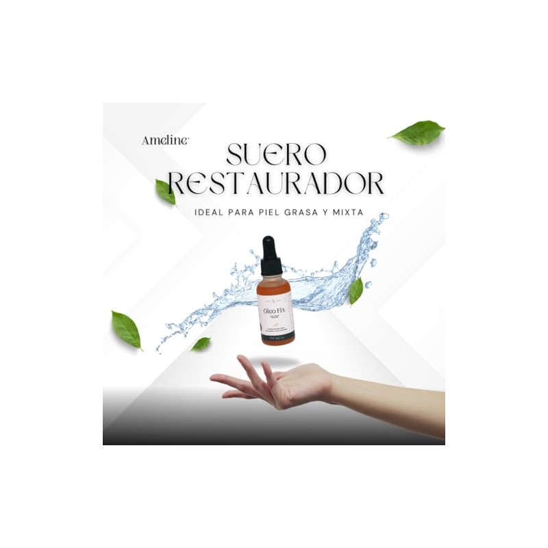 Ameline  leo Fix Suero Facial Ligero con Rosa Mosqueta y Tamanu  Equilibra y Nutre Piel Mixta o Grasa  Absorcin Rpida y Acabado No Graso  30 ml