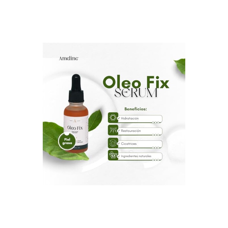 Ameline leo Fix Suero Facial Ligero con Rosa Mosqueta y Tamanu Equilibra y Nutre Piel Mixta o Grasa Absorcin Rpida y Acabado No Graso 30 ml
