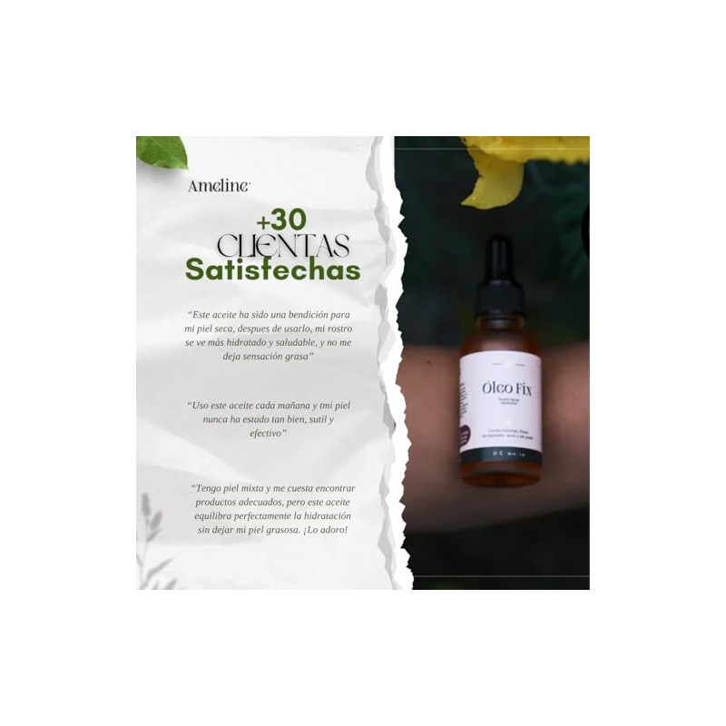 🌟 ⭐ Ameline | Óleo Fix Suero Facial Ligero con Rosa Mosqueta y Tamanu | Equilibra y Nutre Piel Mixta o Grasa | Absorción Rápida y Acabado No Graso | 30 ml ⭐ 🌟