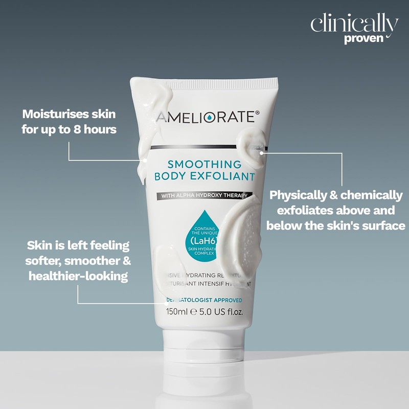 AMELIORATE Ameliorate Smoothing Body Exfoliant 150ml | Lab6, Shea Butter, Coconut Oil | Dermatologically tested, Menopause friendly, BSF approved