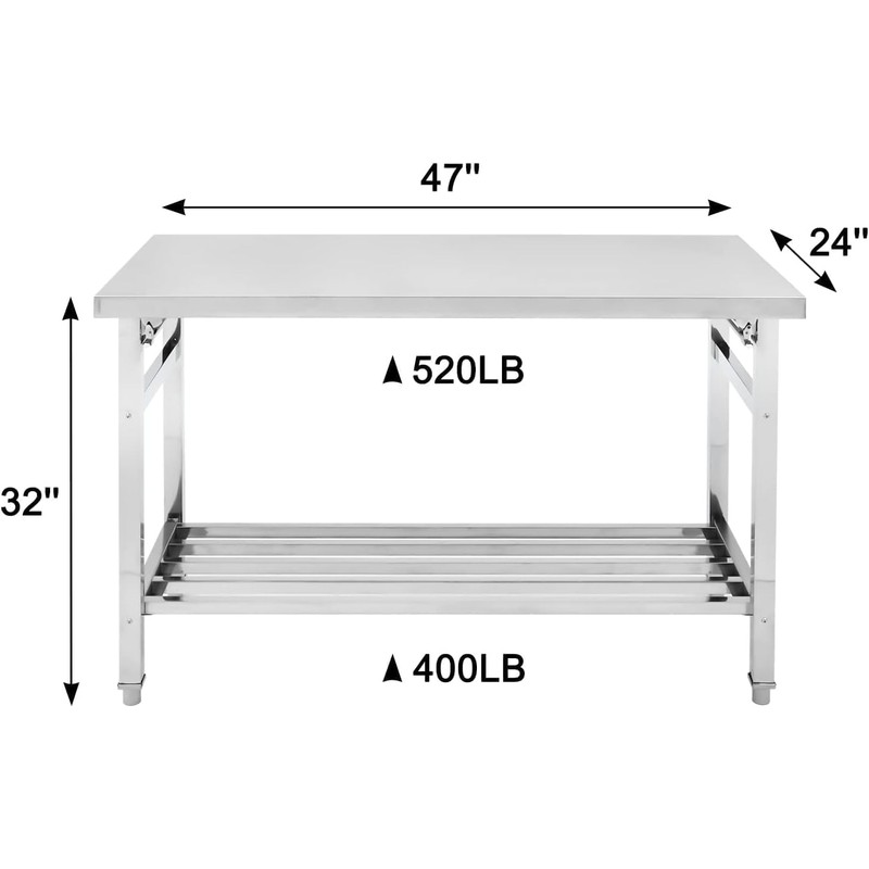 Amenitlif 48“ x 24” Stainless Steel Work Table - NSF Commercial Heavy Duty Folding Prep Table with Adjustable Undershelf, Kitchen Prep Work Tables for Restaurant, Food Service, Hotel