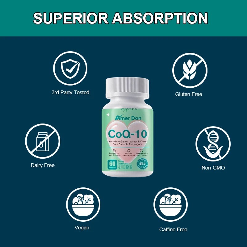 Amer Don Coenzyme Q-10 200mg Antioxidant Heart Support Increase Energy Stamina 60Capsules