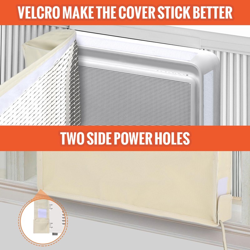 - 【Two Closable Cord Holes】The bottom features an open design, allowing power cords to pass through from either side. Additionally, the hook-and-loop fasteners on both sides enable fine adjustments to the window ac cover's fit