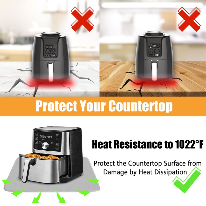 - 【Protect Your Countertop】The heat resistant mats for countertop can effectively protect your countertop from the damage of heat dissipation, to avoid the air fryer or hot pot break your wood or marble countertop.