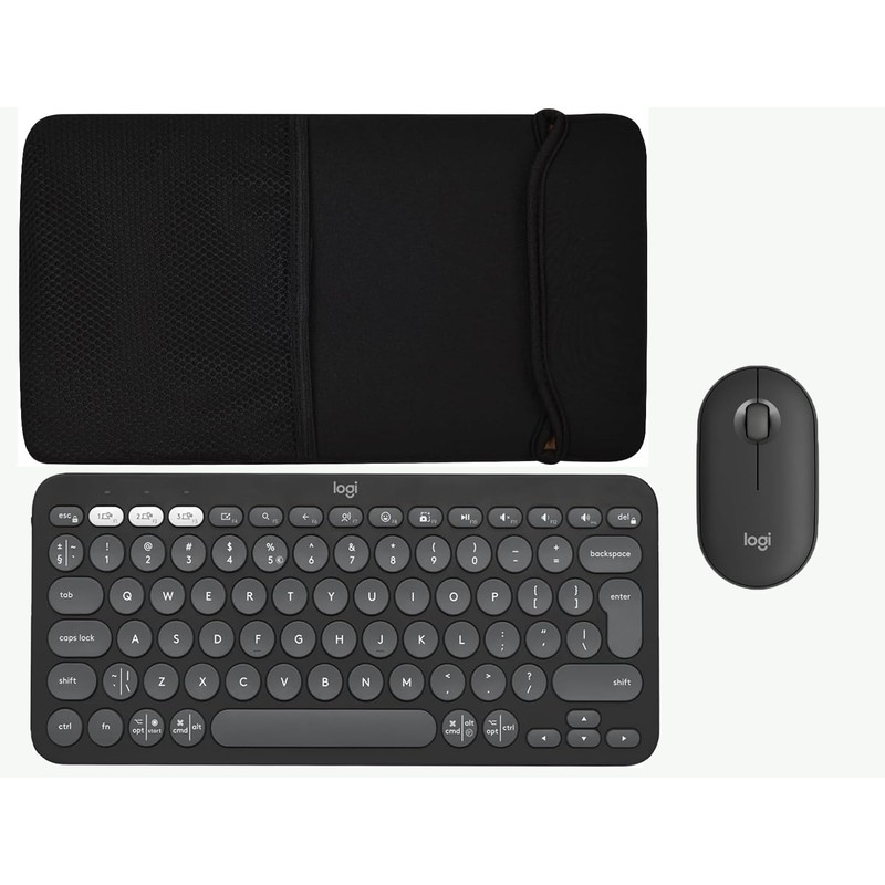 Amerbtech Tastaturhülle, weiche Neopren-Hülle, tragbare Tastaturtasche, Netztasche, stoßfest, wasserdicht, staubdicht, für Logitec K380/K380s Bluetooth-Tastatur und Pebble-Maus 2 M350s kabellose Maus