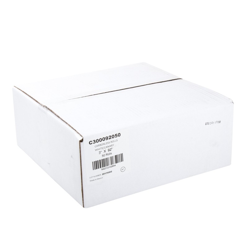 AmerCare 3 Inches x 92 Feet White/Canary Copy Bond Register Rolls, Case of 50