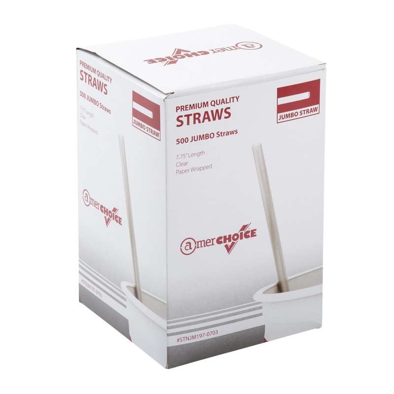 AmerCare 7.75 Inch Jumbo Clear Straws, Paper Wrapped, Case of 12,000