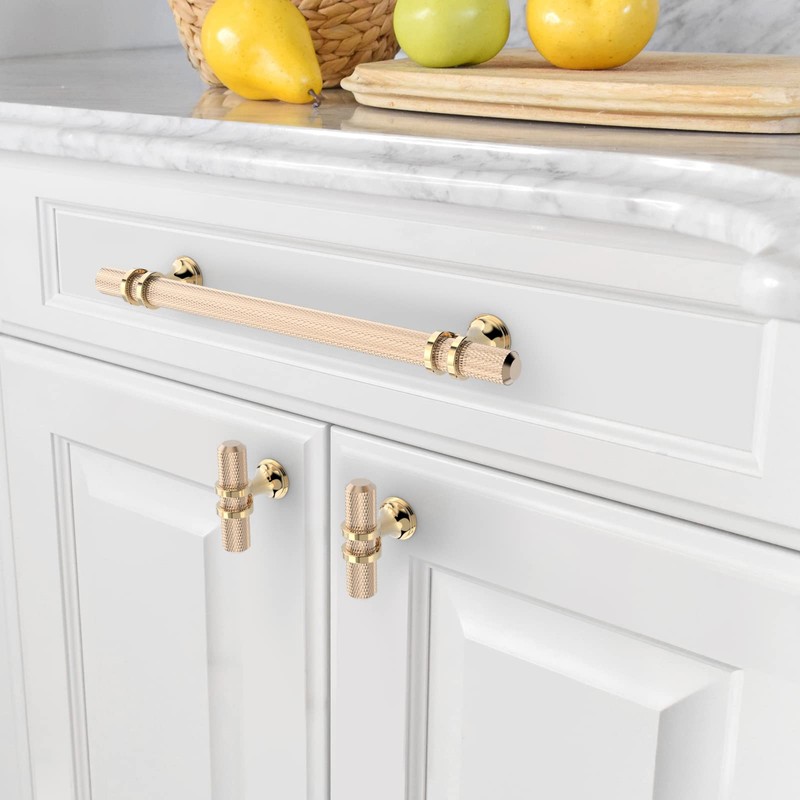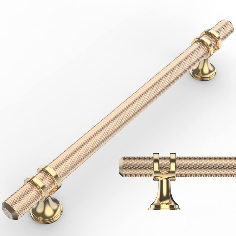 Amerdeco 10 Pack Knurled Gold Cabinet Pulls 8.4 Inch Length (6.3 Inch Hole Center) Brushed Brass Kitchen Cabinet Handles for Drawer Dresser, Cupboard and Wardrobe ZH0025