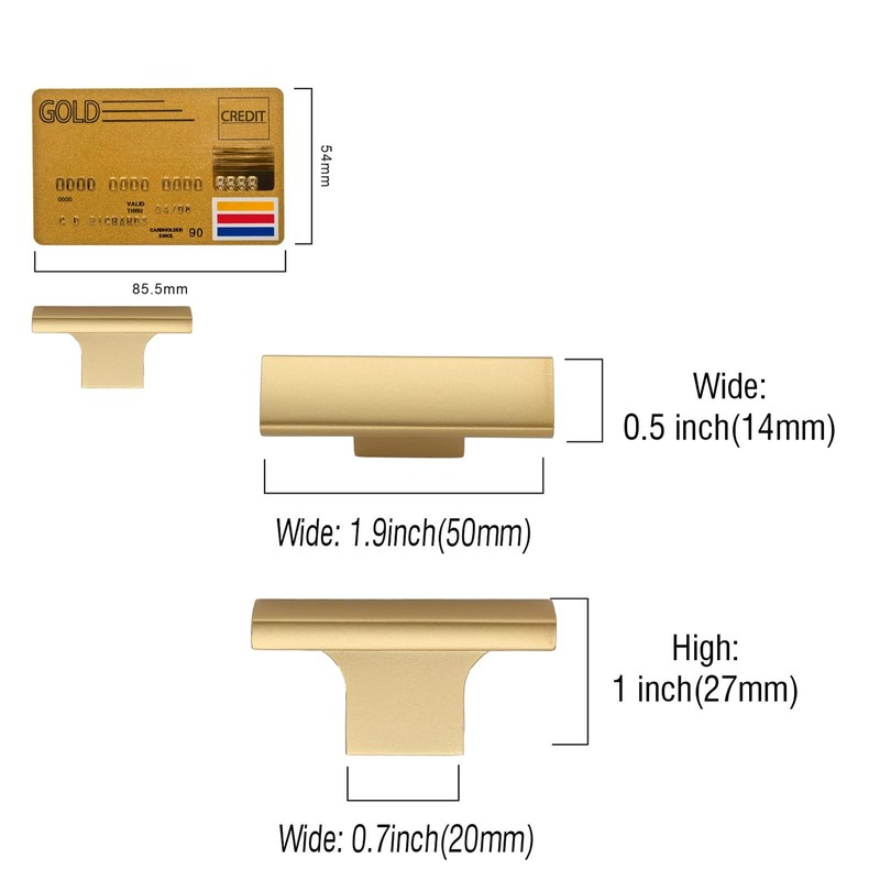 Amerdeco 20 Pack Brushed Gold Cabinet Knobs 2 Inch (50MM) Single Hole Cabinet Pulls Kitchen Cabinet Knobs Drawer Knobs T Bar ZH0026…