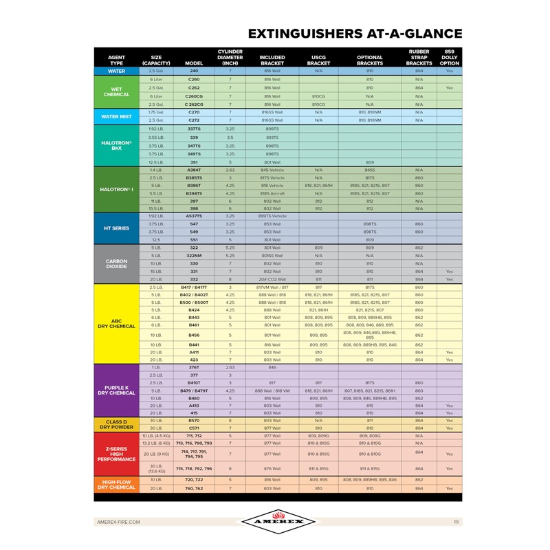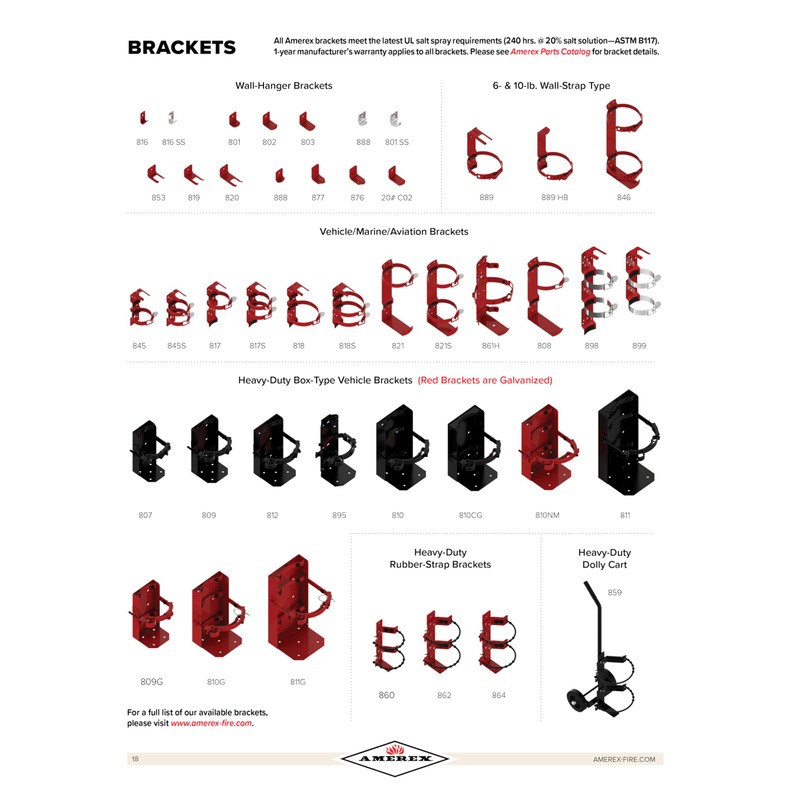 Amerex 2.5 Pound Multi-Purpose ABC Dry Chemical Fire Extinguisher with vehicle bracket operates effectively at the temperature range of -65 to 120 deg F. Extinguisher featuring all metal valve construction has aluminum valve. Dependable drawn steel cylinder extinguisher measuring 15 1/2" X 5 3/4" X 3" has stored pressure design. Fire extinguisher with large loop pull pin features long lasting high gloss polyester powder paint. It has a discharge range of 9 - 15' and discharge time of 10 sec. It uses a specially fluidized and siliconized mono ammonium phosphate dry chemical. Extinguisher chemically insulates class A fires by melting at approximately 350 deg F and coats the applied surface. Extinguisher smothers as well as breaks chain reaction of class B fires and does not conduct electricity back to the operator. Stored pressure dry chemical fire extinguisher can be used on ordinary combustibles, flammable liquids and gases and energized electrical equipment. Extinguisher with bar coded and bi-lingual labels can be easily maintained as well as serviced in an economic way. It is UL listed and complies with NFPA 10 standard.