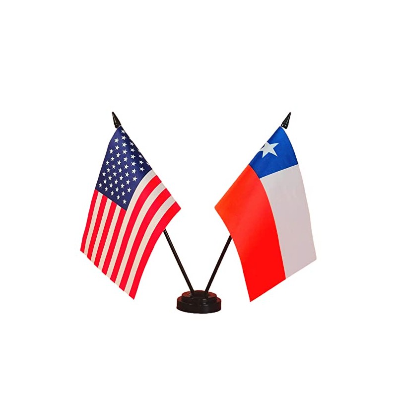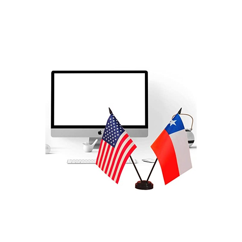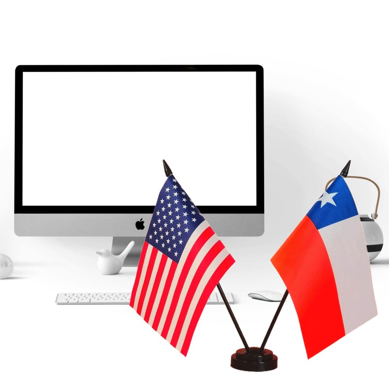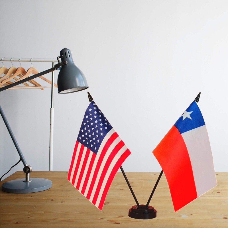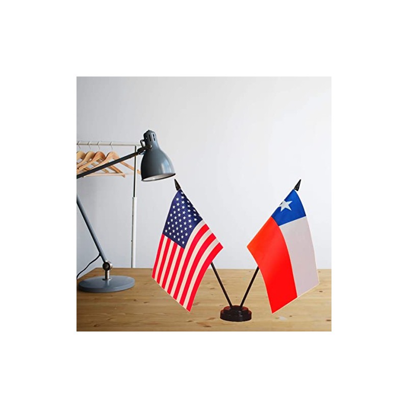 - Material: Made of 100% polyester durable and sturdy. Comes with a 2 Hole Plastic Stand base to keep your Miniature American & Chile desk flags standing steadily on your desk