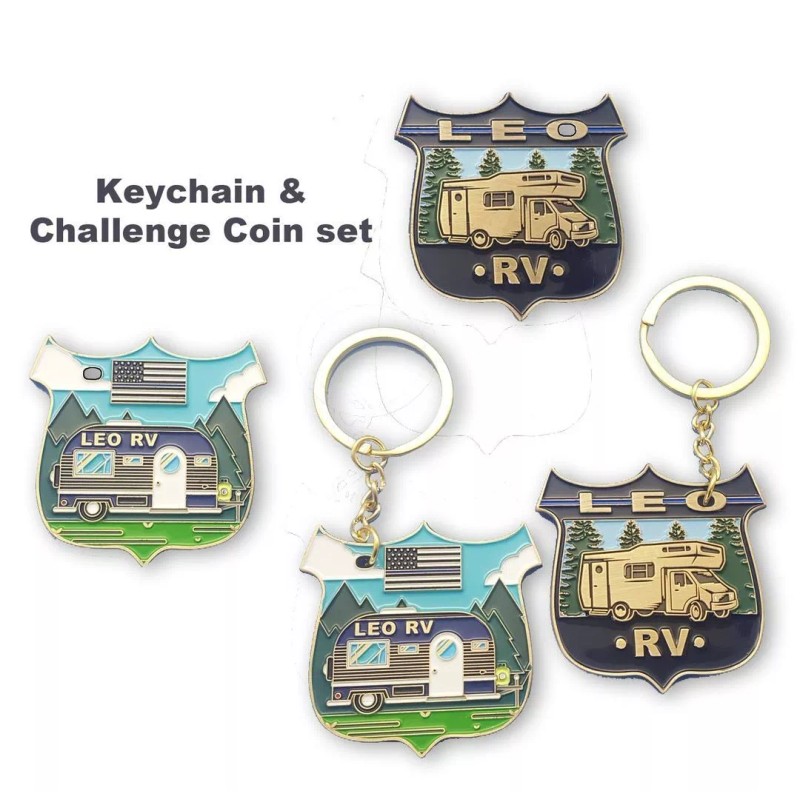 America's Front Line BL2-007 LEO RV Keychain and matching Challenge coin set