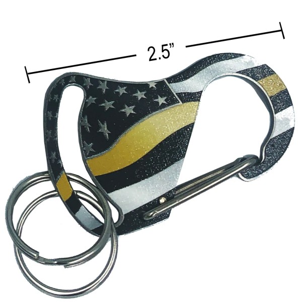 America's Front Line Thin Gold Line Carabiner Keychains with 2 key rings 911 dispatcher yellow securi
