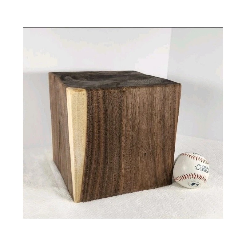 8"x 8"x 8" solid Black Walnut block. Made up of beautiful heartwood from the heart of the midwest. These blocks are rough cut and planed, with wax sealed ends. Smooth sanded surface. Perfect for wood lathe projects, diy home decor, arts and crafts projects. Measurements are approximate. These blocks are rough cut so they will not be an exact perfect square. Blocks are subject to normal minor cracking.