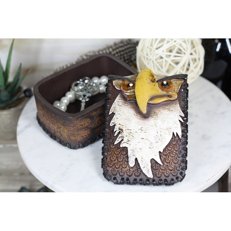 Ebros American Bald Eagle Head And Feathers Prints Decorative Jewelry Box Figurine