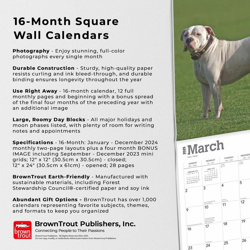 American Bulldogs | 2025 12 x 24 Inch Monthly Square Wall Calendar | BrownTrout | Animals Dog Breeds