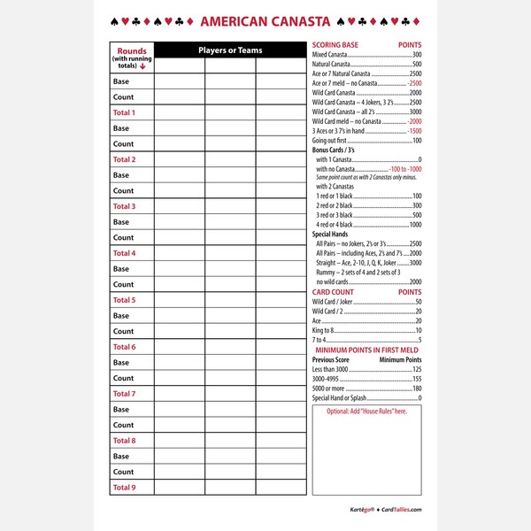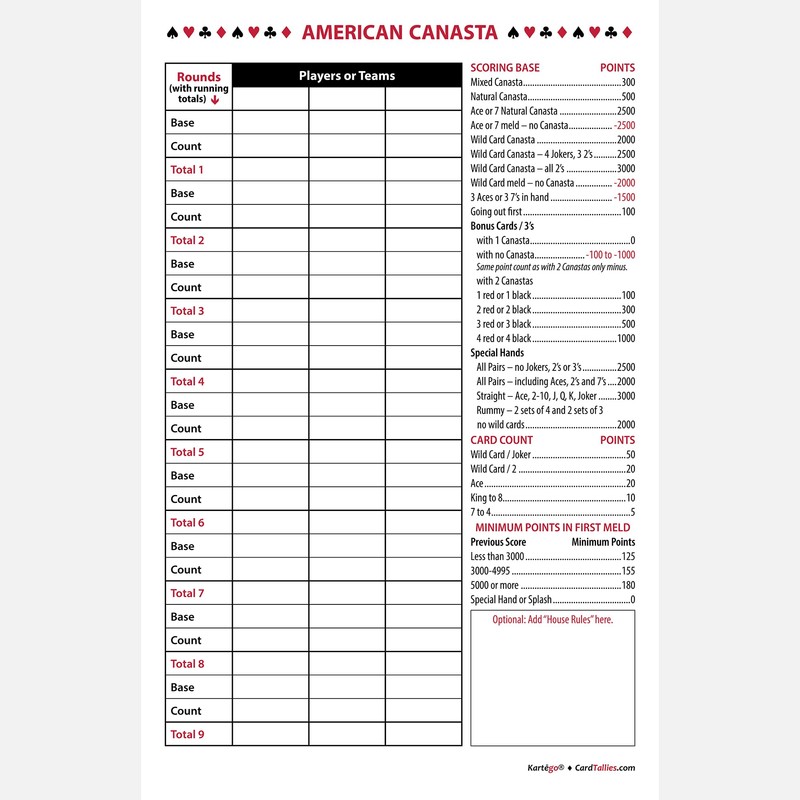 - Several years ago, by popular demand, our company created these American Canasta score pads. Enjoy the original!