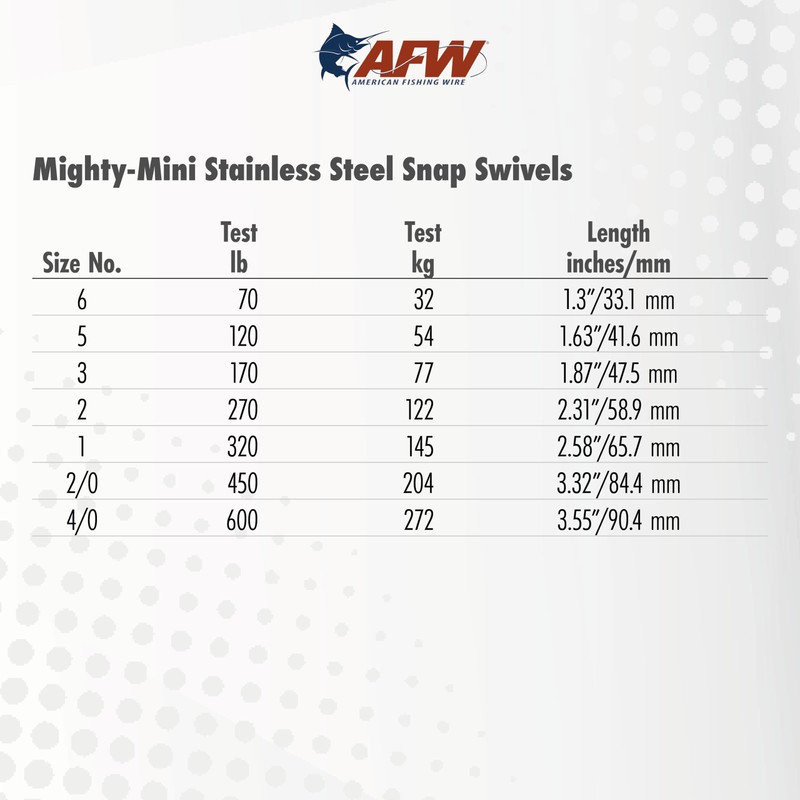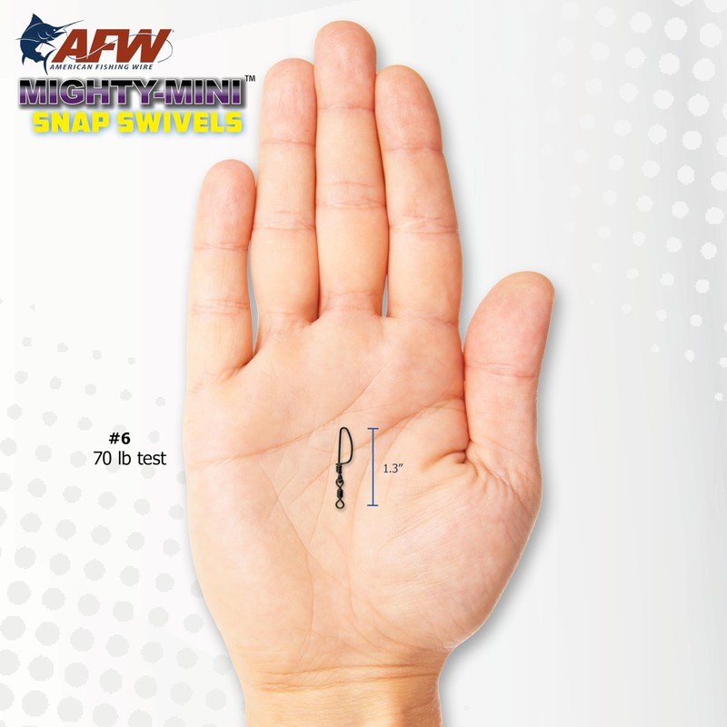 American Fishing Wire Mighty Mini Stainless Steel Snap Swivels, Size #5, 120 lb Test, Gunmetal Black, 50 pc