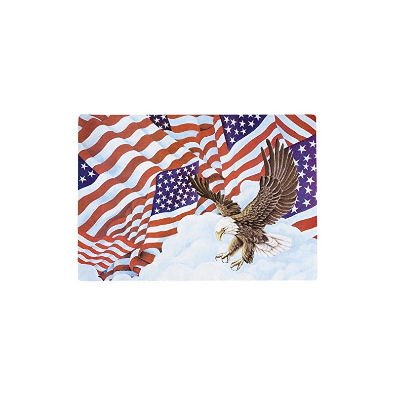 • These American Flag and Eagle paper placemats add the festive touch you need for Memorial Day, the Fourth of July, or Veterans Day parties. These decorative, disposable placemats feature a bald eagle above the clouds with American flags flying in the background. Disposable placemats are ideal for providing guests with a clean surface while making it easier to clean up after the event. Dimensions are 9.75 x 14 Inches.