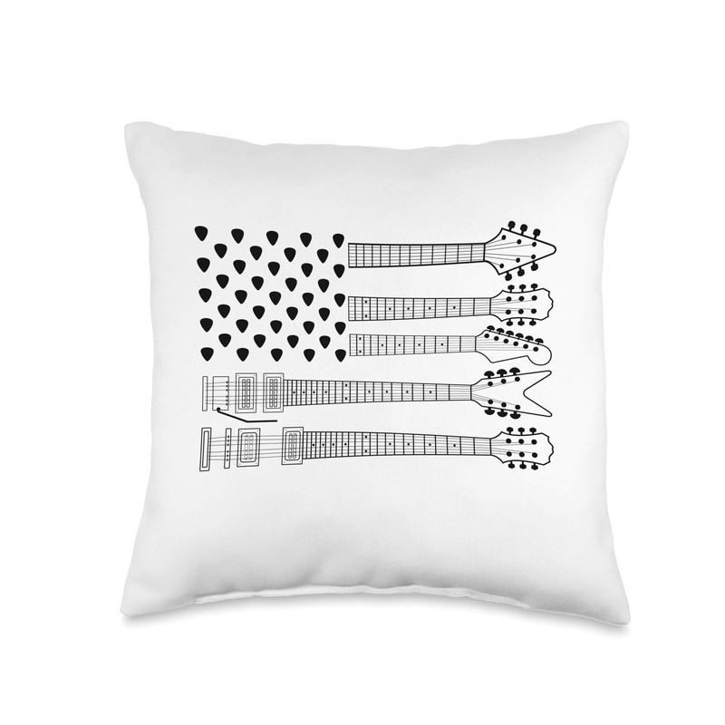 American Flag Guitar Pick Acoustic Musician Bass Guitarist Throw Pillow