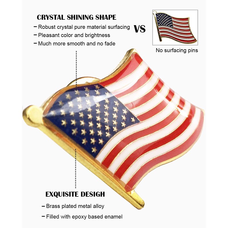 American Flag Lapel Pins – USA Metal Enamel Flag Pins United States US Waving Robust Crystal surfacing Badge brooch for patriotic display (24)